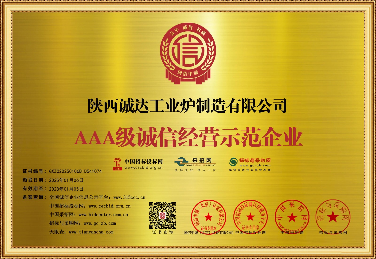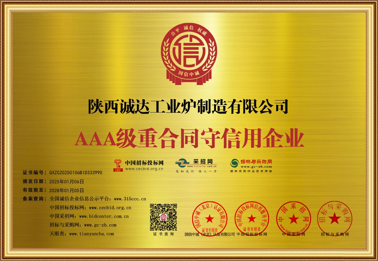 公司榮獲誠信資質(zhì)證書
